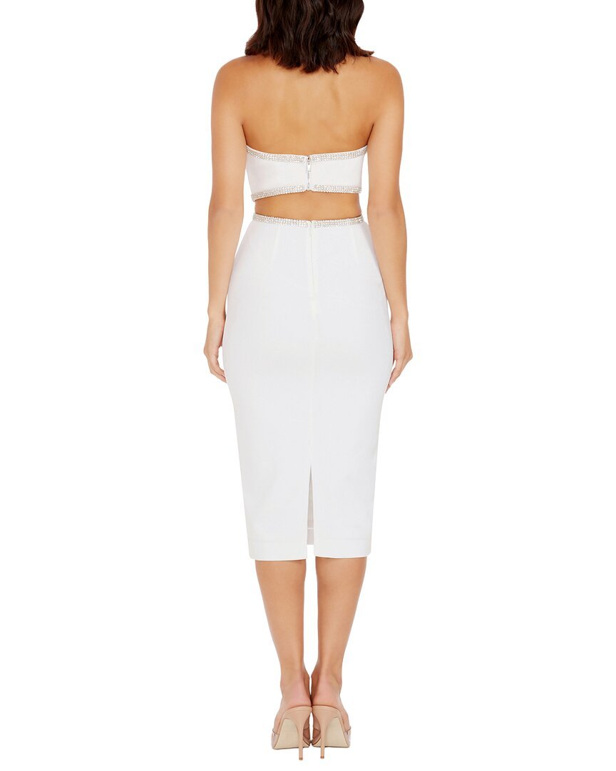 About The Brand – Beautifully Crafted Dresses In Flattering Silhouettes.Ari Midi Dress In White/SilverApproximately 44In From Shoulder To HemMeasurements Taken From A Size Small And May Vary Slightly By Size.Center Back Zipper ClosureThis Item Is Lined96% Polyester 4% SpandexContrast – 95% Polyester, 5% SpandexHand WashImported