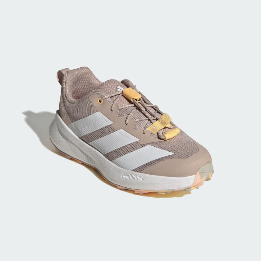 The Terrex Agravic Trail Running Shoes are designed to keep up with every playful stride of young explorers who love to run wild on trails. Lightmotion technology in the midsole provides lightweight comfort for a balance of support and flexibility. Speed lacing provides a snug fit, making it easy for kids to lace up and go. The premium mesh upper offers protection and confidence, allowing kids to run and play with ease. Traxion technology in the outsole delivers ultimate grip, so little feet stay steady on multiple terrains. With sleek foiled overlays and bold 3-Stripes, they offer a look that stands out. With adidas branding, these shoes emblematize our commitment to quality and style, for your child’s every adventure.