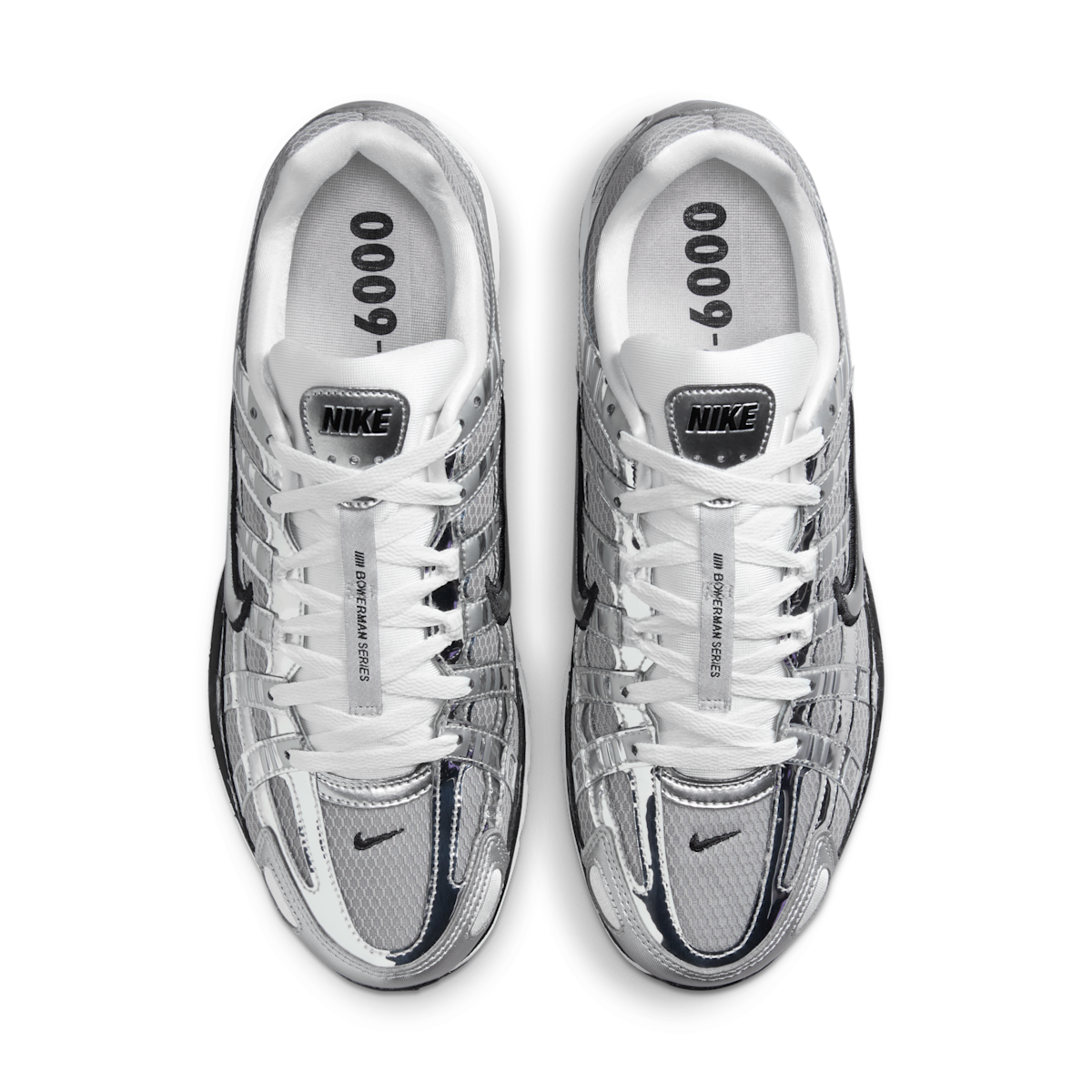 FROM 2006 TO 6002–ALWAYS FUTURE FORWARD. Look to the future with the Nike P-6000. Refreshing the 2006 Air Pegasus with space-age details, like chrome synthetic leather and metallic fabric, this shoe is ready for whatever’s next. Substance Meets Style – Breathable, metallic fabric in the upper has horizontal and vertical overlays in chrome synthetic leather to give a 2000s running aesthetic that’s out of this world. Made for Walking – Foam midsole provides lightweight cushioning to deliver a comfortable underfoot feel so you can take to the streets. No-Slip Grip – A rubber outsole provides durable traction Product Details – Reflective details. Not intended for use as Personal Protective Equipment.
