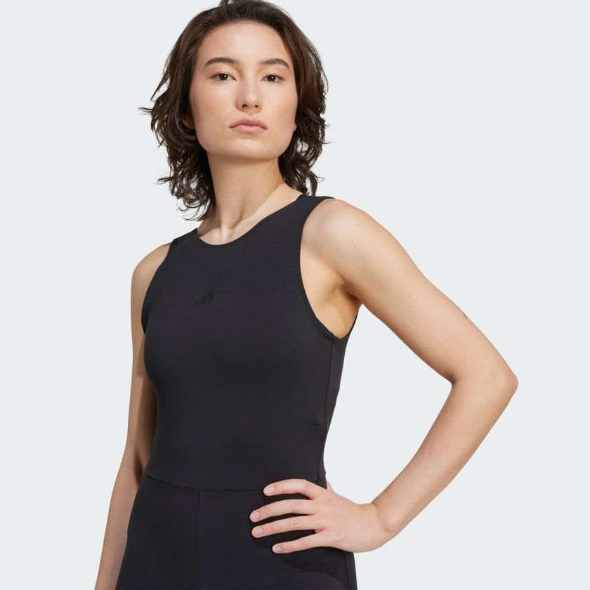 Find your flow in the adidas Motion Bodysuit. Great for yoga, Pilates or barre, this super-soft one-piece allows you to move without restriction. The adisoft fabric feels feather-light, while moisture-absorbing AEROREADY technology keeps you dry.